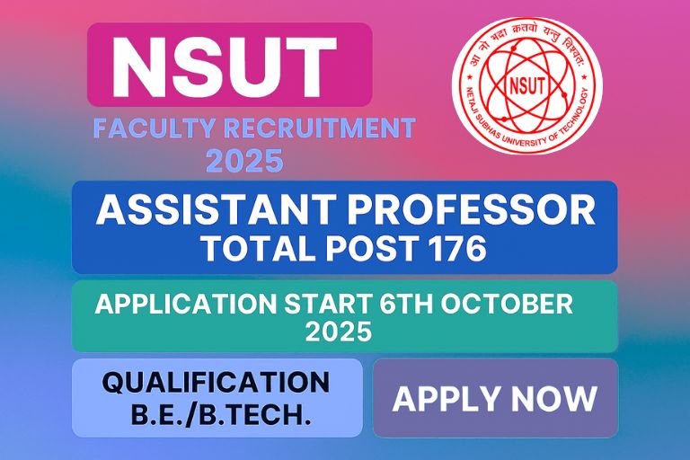 Netaji Subhas University of Technology (NSUT) has launched a major recruitment drive for faculty positions across its engineering departments. The official notification (Advt. No. NSUT/FACULTY/2025/01) was released on 6th October 2025, inviting applications for Assistant Professor and Associate Professor roles. This campaign offers 176 vacancies in disciplines such as Computer Science, Electronics, Instrumentation, and Electrical … Read more